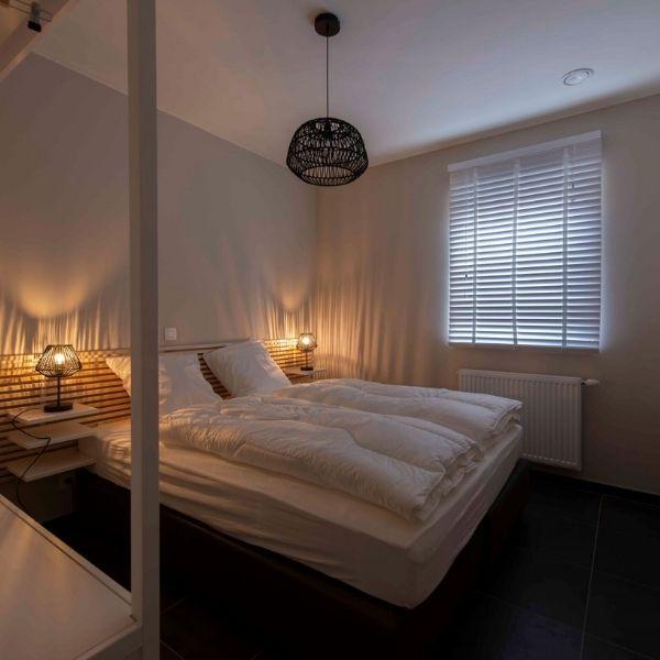 • Kamer 1 is voorzien van een 2-persoonsbed (1m60 x 2m) met 2 eenpersoonsdekbedden en 2 kussens